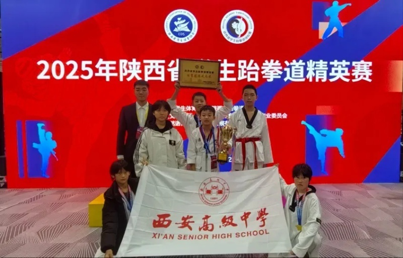 10月24日至25日,2025年陕西省学生跆拳道精英赛在嘉会国际中心火热开赛。西安高级中学派出7名选手参赛,最终以全胜战绩斩获七枚金牌,并荣膺“体育道德风尚奖”,在省级赛场展现了西高学子的竞技实力与精神风貌。